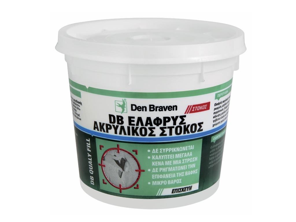 - Το DB Qually Fill είναι έτοιμος προς χρήση, ελαφρύς στόκος με μηδενική συρρίκνωση.