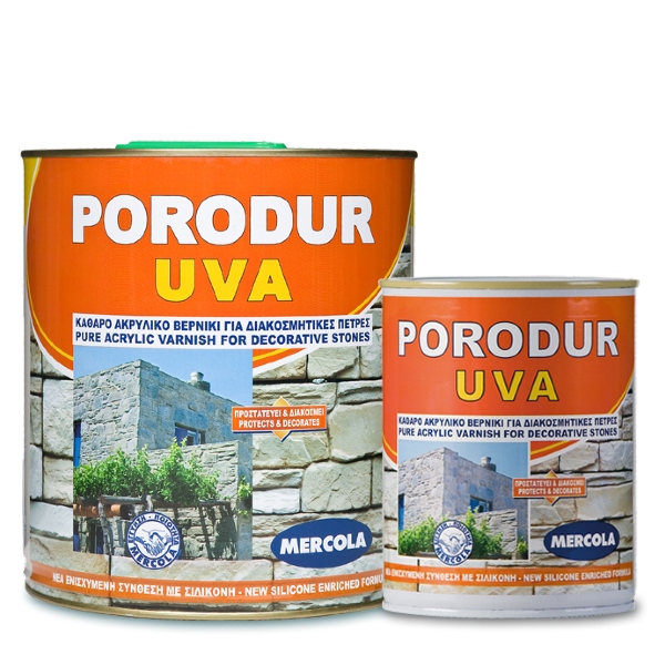 Προστατευτικό & διακοσμητικό ακρυλικό διαφανές βερνίκι διαλύτου πέτρινων επιφανειών,είναι υψηλής ποιότητας διαφανές βερνίκι πέτρας και τεχνητών δομικών υλικών, καθαρής ακρυλικής βάσης, οργανικών διαλυτών ενισχυμένο με σιλικόνη. Έχει μεγάλη διεισδυτικότητα και υψηλή αντοχή στις καιρικές επιδράσεις και στην υπεριώδη ηλιακή ακτινοβολία λόγω των UV φίλτρων που περιέχει. Προστατεύει την επιφάνεια που εφαρμόζεται από τα χτυπήματα, την τριβή, την υγρασία και την απορρόφηση λεκέδων. Διακοσμεί την επιφάνεια αναδεικνύοντας τους φυσικούς χρωματισμούς των υλικών που εφαρμόζεται. Είναι κατάλληλο για εσωτερική και εξωτερική χρήση.